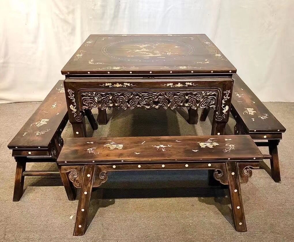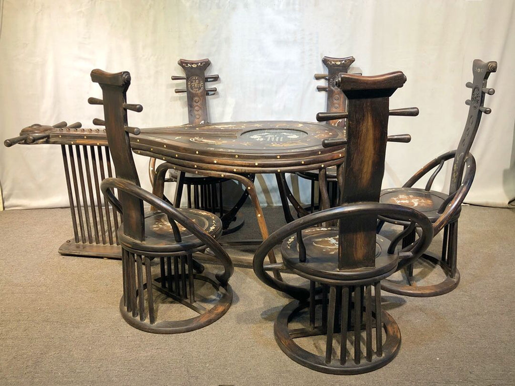 Y1090015鑲嵌貝殼琵琶茶桌六件套